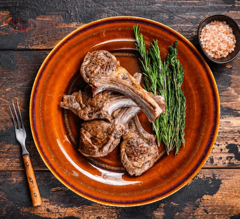 gegrillt mit Kräutersoße serviert mit Hausbeilage