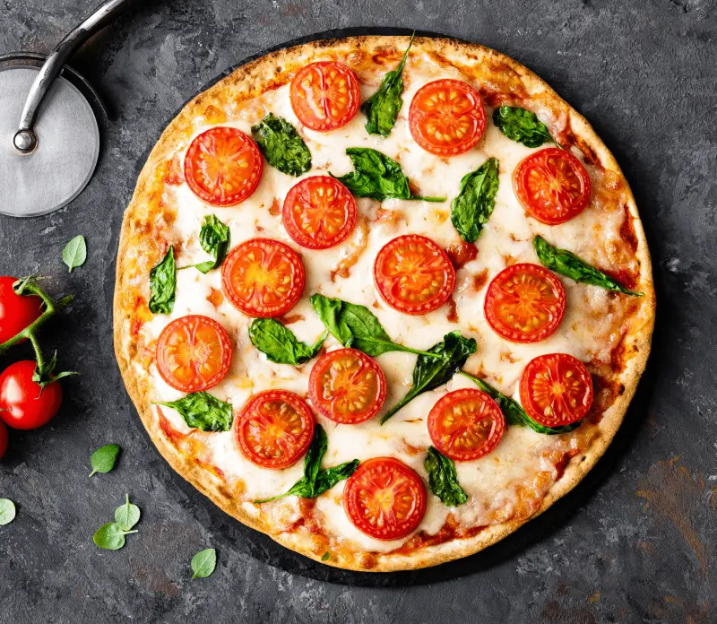 mit Mozzarella, Rucola, Parmesan und Kirschtomaten