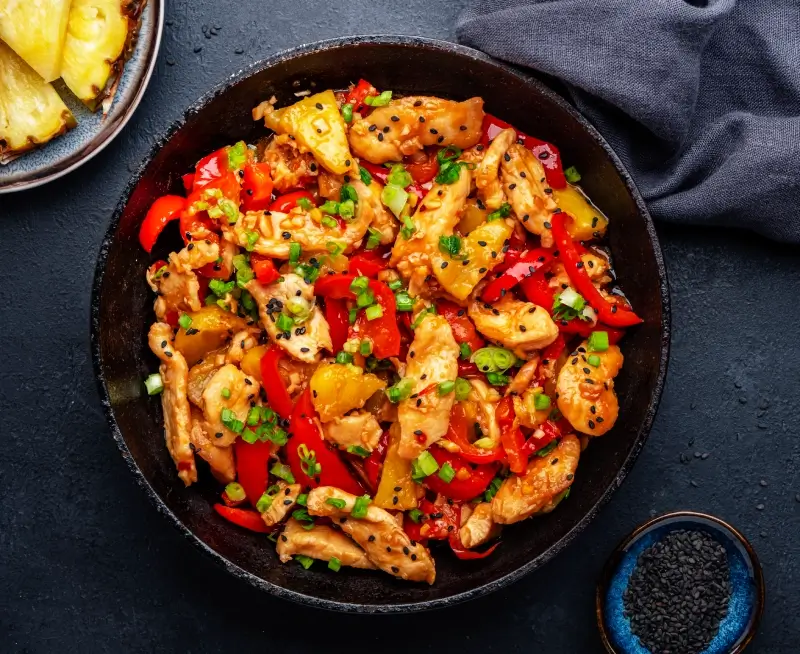 mit Frühlingsgemüse in Vulkan-Chilisoße