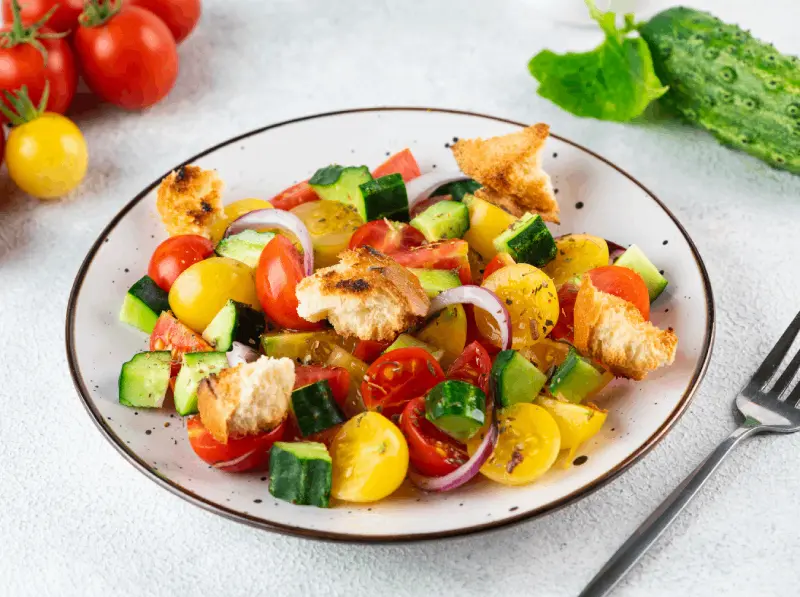 (bunter Salat, Gurken, Tomaten, Zwiebeln und Paprika)